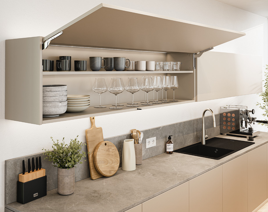 Slim, intelligently designed, and maximally efficient: that’s what Häfele Free Slim stands for with its completely redesigned energy storage principle. Häfele Free Slim is a well-thought-out product family that covers all opening types—flap, fold, up, and swing—and also offers suitable product solutions for modern handle-free cabinet design. By 2027, we will gradually expand our range to include the additional opening types fold, up, and swing.