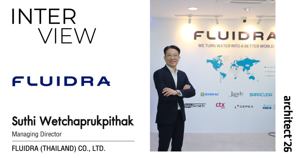 Mr. Suthi Wetchaprukpitak, Managing Director of Fluidra (Thailand) Co., Ltd., revealed that participating in Architect’26 marks Fluidra’s first appearance at the event. The goal is to communicate directly with architects, engineers, and real estate developers making clear that Fluidra is not merely a supplier of products, but a partner that understands the language of design and can collaborate from the Concept Design stage onward.
