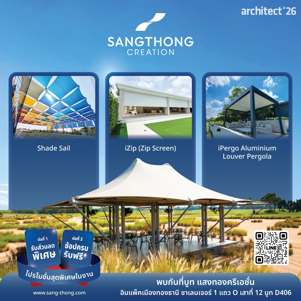 Thai-style house whose structure is not traditional wood but is constructed from iR-uPVC rain gutters for roofs and retractable wall, perfect for the concept of ‘re-appropriate’ to showcase new possibilities of material.