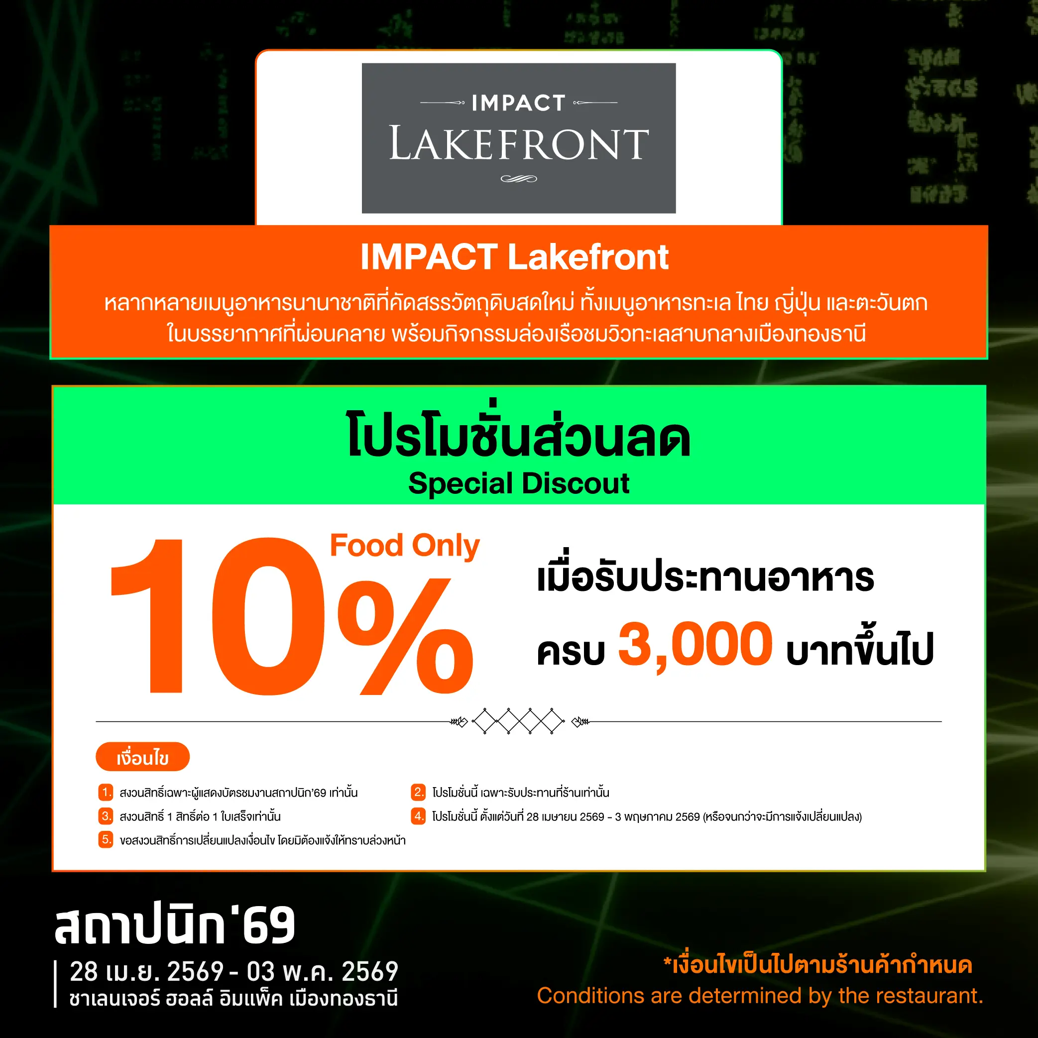 8.บริการฟรีรถตู้ระหว่างที่พัก-อิมแพ็ค เมืองทองธานี สำหรับผู้ที่จองห้องพัก 7 ห้อง ขึ้นไปเท่านั้น โดยสามารถเลือกได้อย่างใดอย่างหนึ่ง คือ ไปส่ง หรือ รับกลับ อิมแพ็ค เมืองทองธานี 1 เที่ยว / 1 คัน