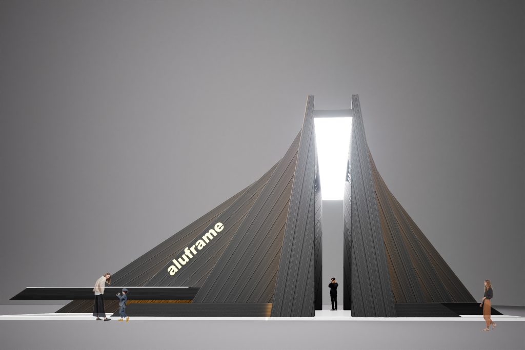 ในกระบวนการนี้ ดีไซเนอร์ได้คัดเลือกอลูมิเนียมโปรไฟล์บางส่วน โดยเฉพาะชิ้นส่วนที่เคยถูกใช้ในบทบาทเดิม หรือไม่ได้ถูกนำมาใช้ต่อแล้ว เพื่อนำมาตีความใหม่ในบริบททางสถาปัตยกรรม วัสดุเหล่านี้จึงถูกนำมาจัดวางใหม่ กลายเป็นโครงสร้างขนาดใหญ่ที่มีจังหวะของเส้นสาย เกิดเป็นพื้นที่ที่ผู้ชมสามารถเดินผ่าน รับรู้แสง เงา และมิติของวัสดุได้อย่างใกล้ชิด พาวิลเลียนจึงไม่ได้เป็นเพียงพื้นที่จัดแสดง แต่กลายเป็นเหมือน “แลนด์มาร์ก” ภายในงาน ที่สะท้อนศักยภาพของอลูมิเนียมในมิติที่ก้าวข้ามจากการเป็นเพียงเฟรม