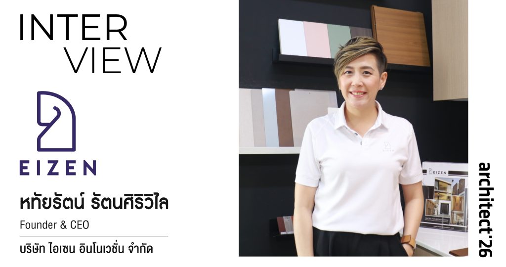 คุณหทัยรัตน์ รัตนศิริวิไล Founder & CEO บริษัท ไอเซน อินโนเวชั่น จำกัด มองว่า การพัฒนาวัสดุสำหรับงานสถาปัตยกรรมควรครอบคลุมมากกว่าตัวผลิตภัณฑ์เพียงอย่างเดียว แต่ต้องรวมถึงกระบวนการใช้งานจริง ตั้งแต่การเลือกวัสดุ การออกแบบ ไปจนถึงการติดตั้ง เพื่อให้ระบบวัสดุสามารถทำงานร่วมกับพื้นที่สถาปัตยกรรมได้อย่างเหมาะสม