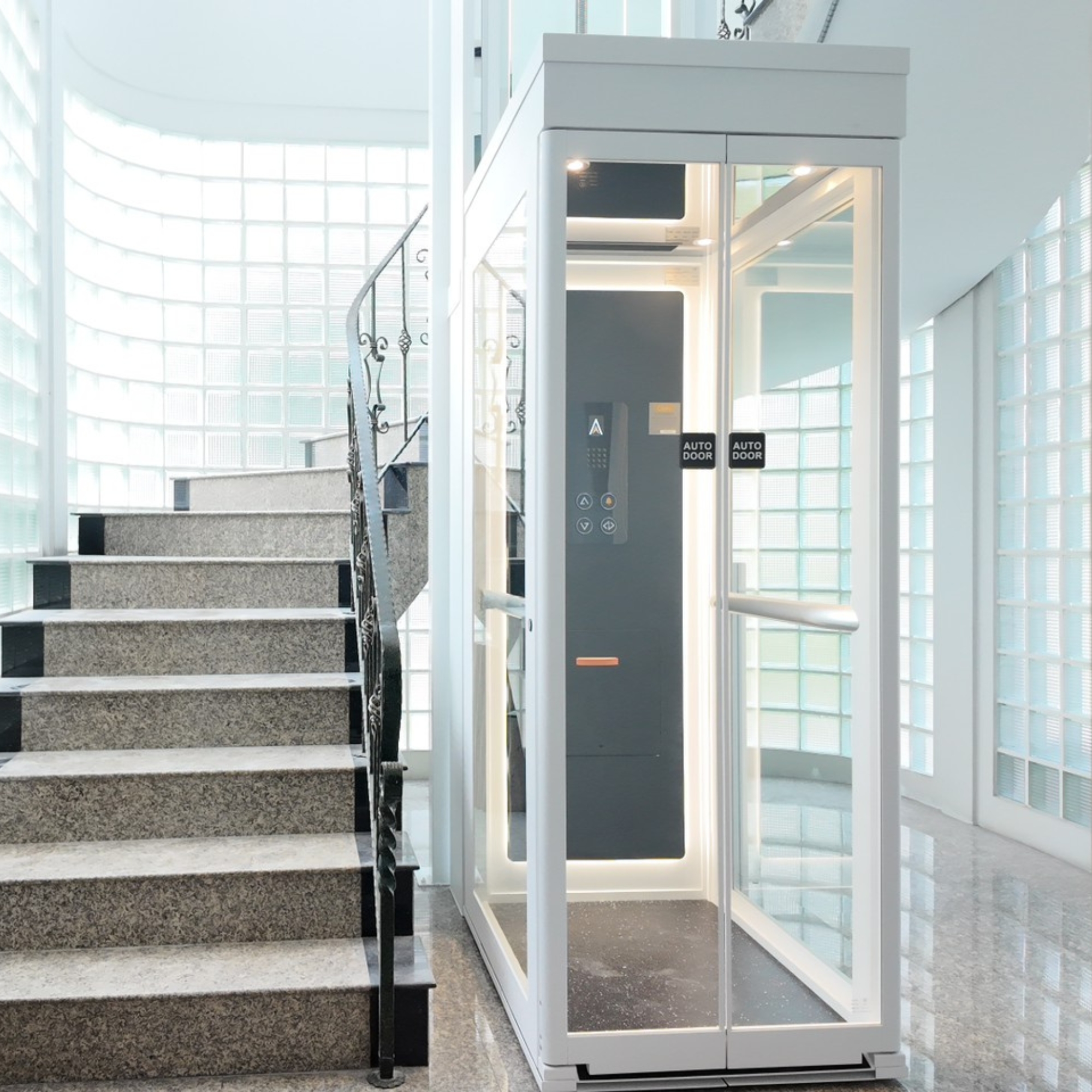 - ดีไซน์ทันสมัย กระจกนิรภัยรอบด้าน ช่วยให้ลิฟต์กลมกลืนกับดีไซน์บ้าน