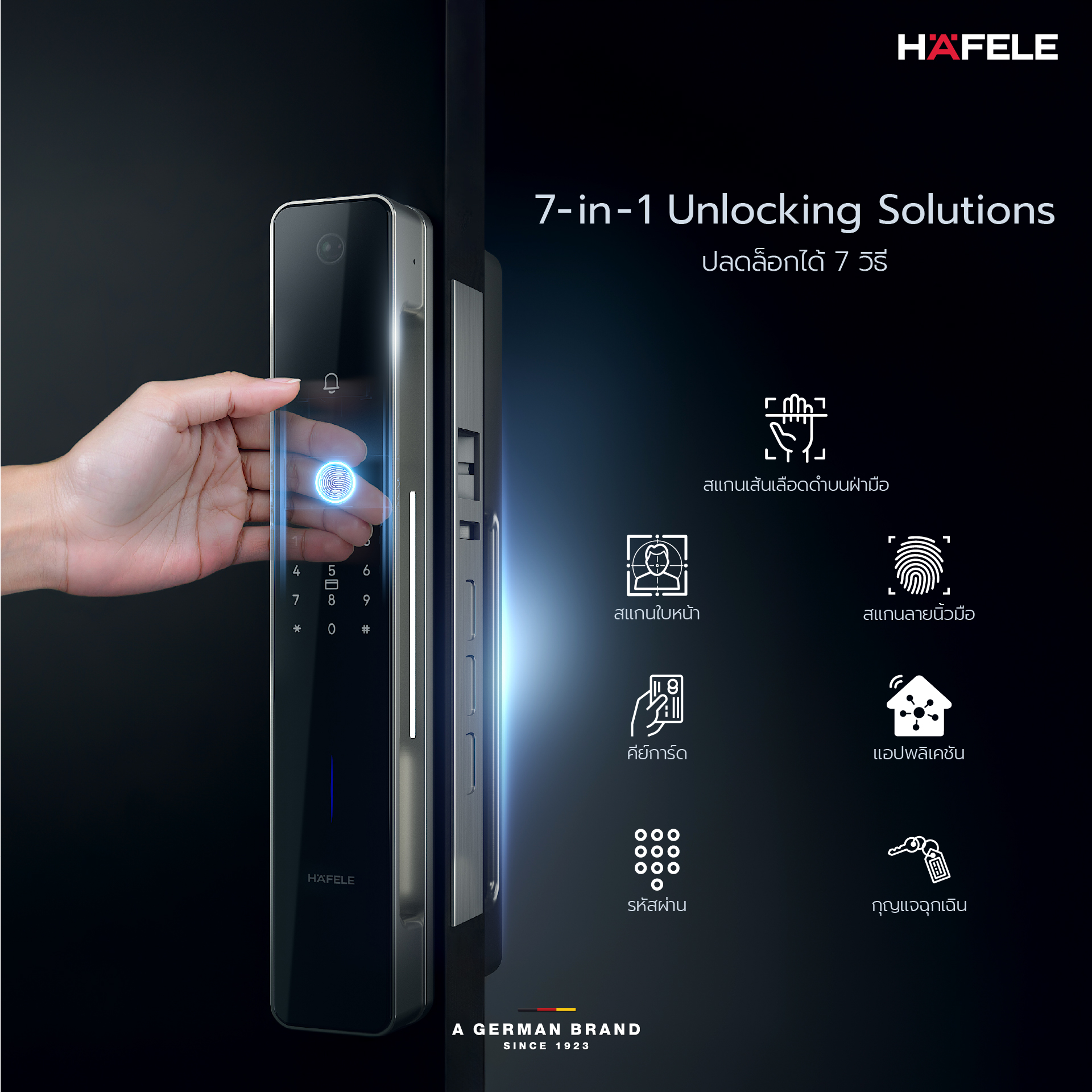 ผสานดีไซน์เรียบหรูเข้ากับเทคโนโลยีความปลอดภัยขั้นสูง เพื่อการใช้ชีวิตยุคใหม่อย่างแท้จริงภายใต้กระจกหน้าดีไซน์พรีเมียม ซ่อนเทคโนโลยีอัจฉริยะครบครัน ทั้ง 3D Facial ID, Palm ID, กล้อง HD, ระบบคีย์การ์ด และเรดาร์ตรวจจับบุคคลอัตโนมัติ