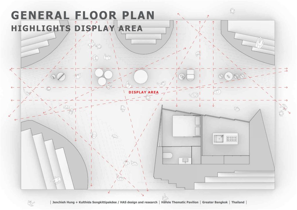 สถาปนิกทั้งสองของ Jenchieh Hung + Kulthida Songkittipakdee / HAS design and research ยังได้แชร์วิสัยทัศน์การออกแบบที่มีร่วมกับสมาคมสถาปนิกสยาม ในพระบรมราชูปถัมภ์ (ASA) มองว่า วิธีการจัดแสดงสินค้าในงานกำลังปรับตัว โฟกัสที่การสร้างประสบการณ์มากกว่าการวางของขายอย่างเดียว รวมไปถึงแบรนด์ Häfele เอง ก็เล็งเห็นโอกาสในการ Rebrand ตนเองในแบบที่ไม่เคยทำมาก่อน กลายเป็นคอนเซปต์หลักของการออกแบบครั้งนี้