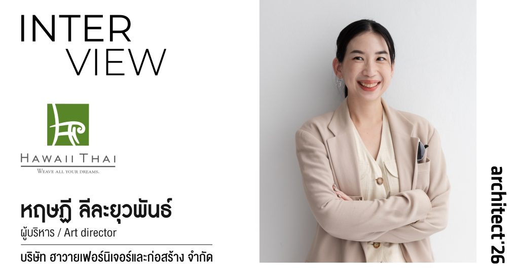 คุณพลอย หฤษฎี ลีละยุวพันธ์ ผู้บริหาร/ Art director บริษัท ฮาวายเฟอร์นิเจอร์และก่อสร้าง จำกัด มองว่างานสถาปนิกเป็นพื้นที่สำคัญในการพบกับกลุ่มวิชาชีพที่เกี่ยวข้องกับงานออกแบบโดยตรง ไม่ว่าจะเป็นสถาปนิก นักออกแบบภายใน วิศวกร ผู้รับเหมา รวมถึงนักออกแบบภูมิทัศน์และผู้พัฒนาโครงการ