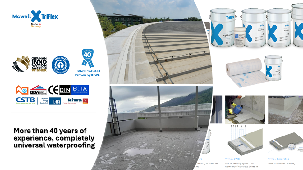 ในโลกของการก่อสร้างและสถาปัตยกรรม “ระบบกันซึม” คือหัวใจสำคัญที่ช่วยปกป้องโครงสร้างอาคารให้คงทนถาวร Triflex ผู้นำด้านระบบกันซึมชนิดเหลวคุณภาพสูง (LAW – Liquid Applied Waterproofing) ระดับโลกจากประเทศเยอรมนี พร้อมนำเสนอนวัตกรรมที่ก้าวข้ามขีดจำกัดเดิมๆ ด้วยระบบ PMMA และ STPE ที่ออกแบบมาเพื่อความทนทานสูงสุดมากกว่า 25 ปี และติดตั้งได้รวดเร็วอย่างเหลือเชื่อ