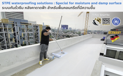 ระบบกันซึมชนิดเรซินเหลวที่ขึ้นชื่อเรื่องเซตตัวเร็วและความแข็งแรง เหมาะสำหรับงานดาดฟ้า ระเบียง หลังคาเหล็ก หลังคากระจก และที่จอดรถ - Triflex STPE (Silane Terminated Polyether) – SmartTec: ปลอดภัย ไร้กลิ่น ติดตั้งง่าย