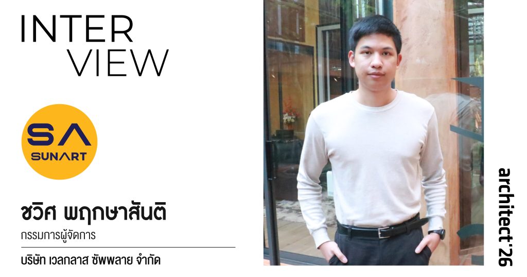 คุณชวิศ พฤกษาสันติ กรรมการผู้จัดการ บริษัท เวลกลาส ซัพพลาย จำกัด เล่าว่า การเข้าร่วมงานสถาปนิก’69 ซึ่งเป็นปีที่ 5 ติดต่อกันของบริษัท ไม่ได้เป็นเพียงการออกบูธแสดงสินค้า แต่คือเวทีสำคัญในการประกาศภาพลักษณ์ใหม่ของแบรนด์ SUN ART อย่างเต็มรูปแบบ