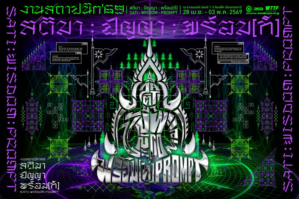 โทนภาพรวมของ Key Visual จึงถูกออกแบบให้เป็น Visual Meditation เสมือนหน้าจอที่กำลังติดตั้งระบบความคิดใหม่ ในขณะที่เส้นยันต์ ผังทางสถาปัตยกรรม และไดอะแกรม ถูกจัดวางเป็นชั้นความคิด แสดงถึงการอยู่ร่วมกันของความเชื่อ เหตุผล และจิตวิญญาณ