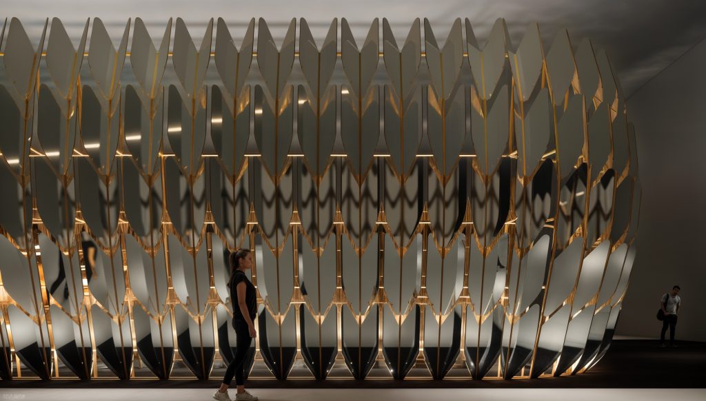 ผ่าน Thematic Pavilion สไตล์ Futuristic ผลงานการคอลแลปของ Supermachine Studio สตูดิโอที่มีลายเซ็นการออกแบบชัดเจน เน้นการตั้งคำถามกับสิ่งที่เกิดขึ้นในสังคม และ TODĀ แบรนด์วัสดุตกแต่งและเฟอร์นิเจอร์ชั้นนำ ที่หลงใหลในงานออกแบบค้นคว้า ทดลอง และพัฒนาวัสดุทดแทนสำหรับอนาคต